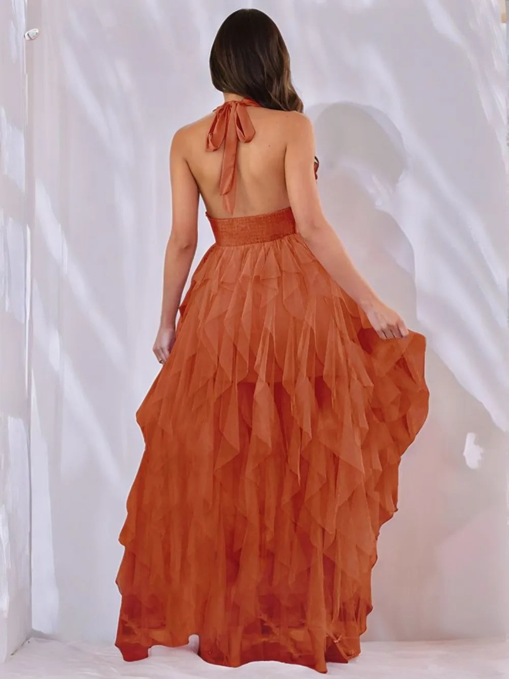 Halter Neck Irregular Mesh Dress