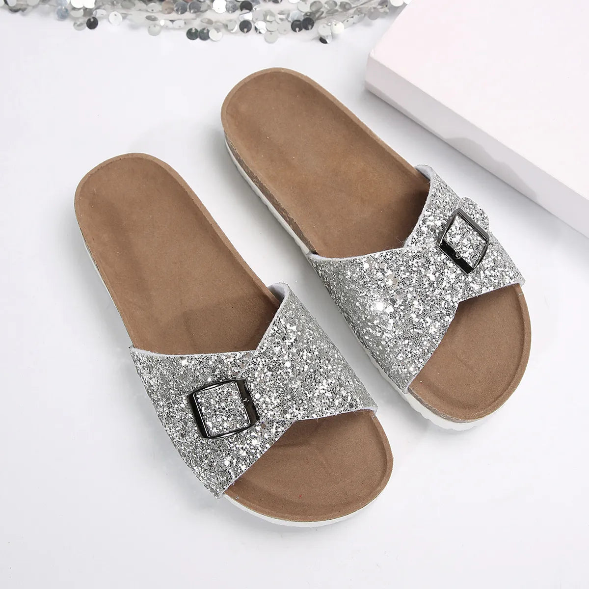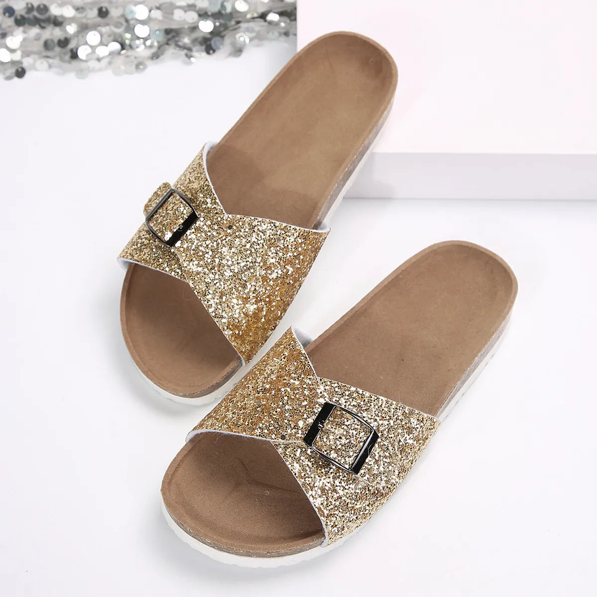 Glitter Buckle Strap Sandals