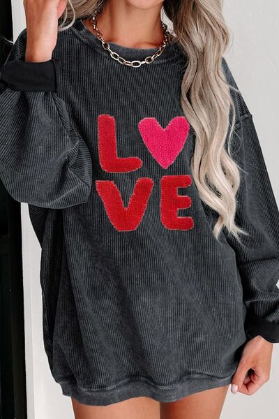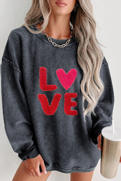 LOVE Round Neck Dropped Shoulder Sweatshirt