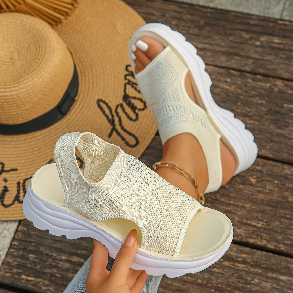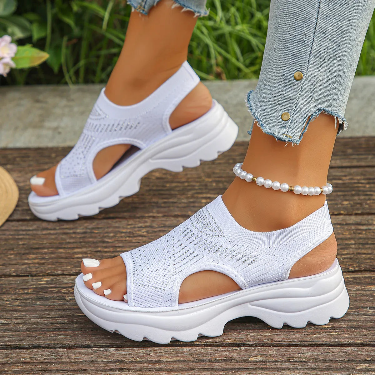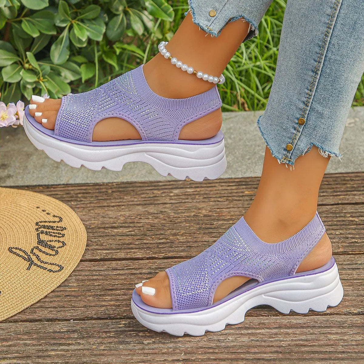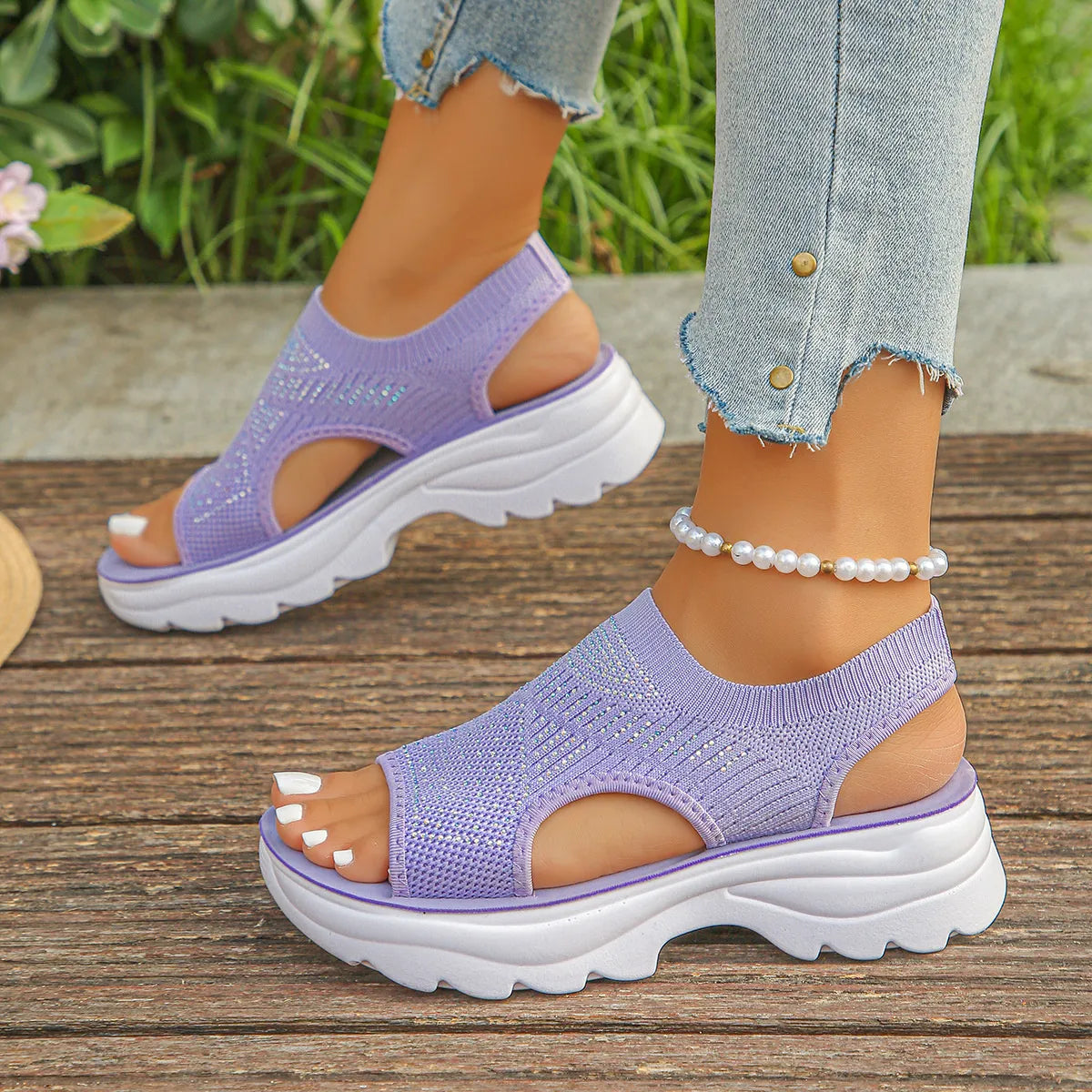 Mesh Open Toe Platform Sandals