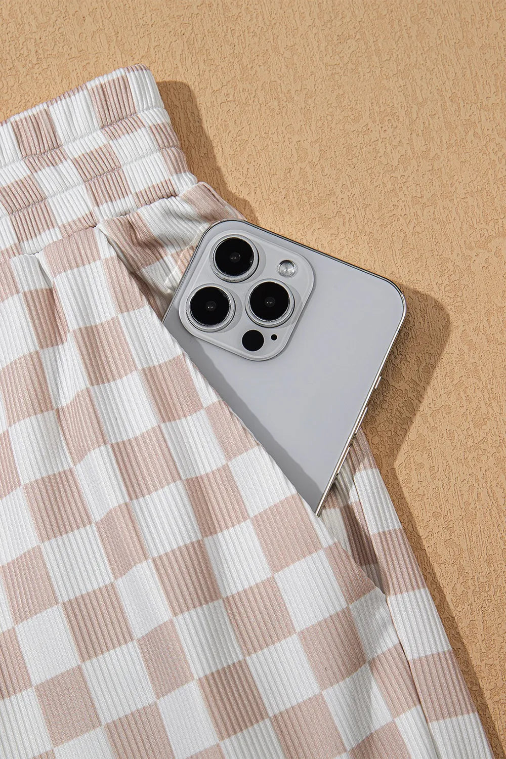 Ribbed Texture Checkered Print Tank and Pants Set