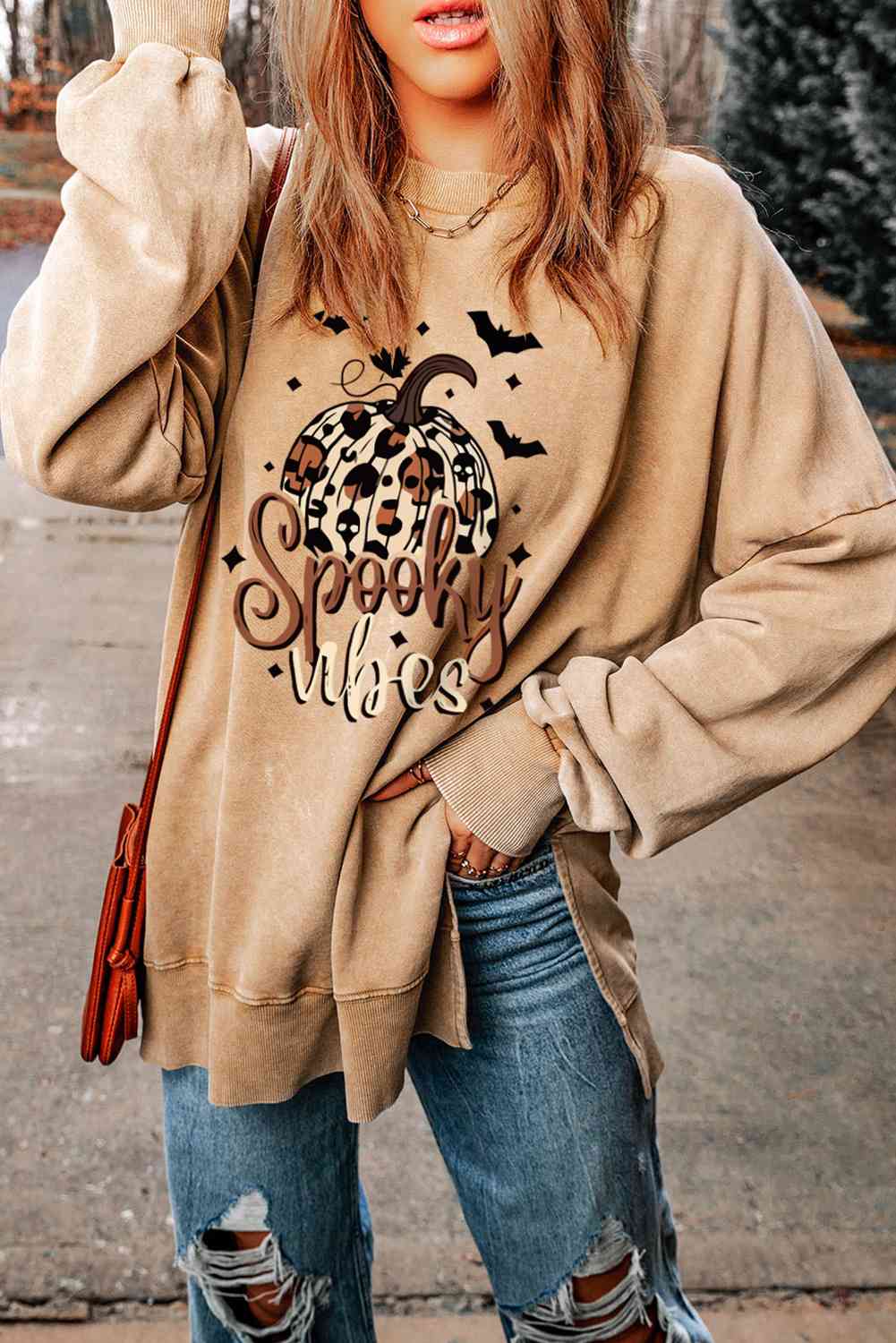 SPOOKY VIBES Graphic Slit Dropped Shoulder Sweatshirt