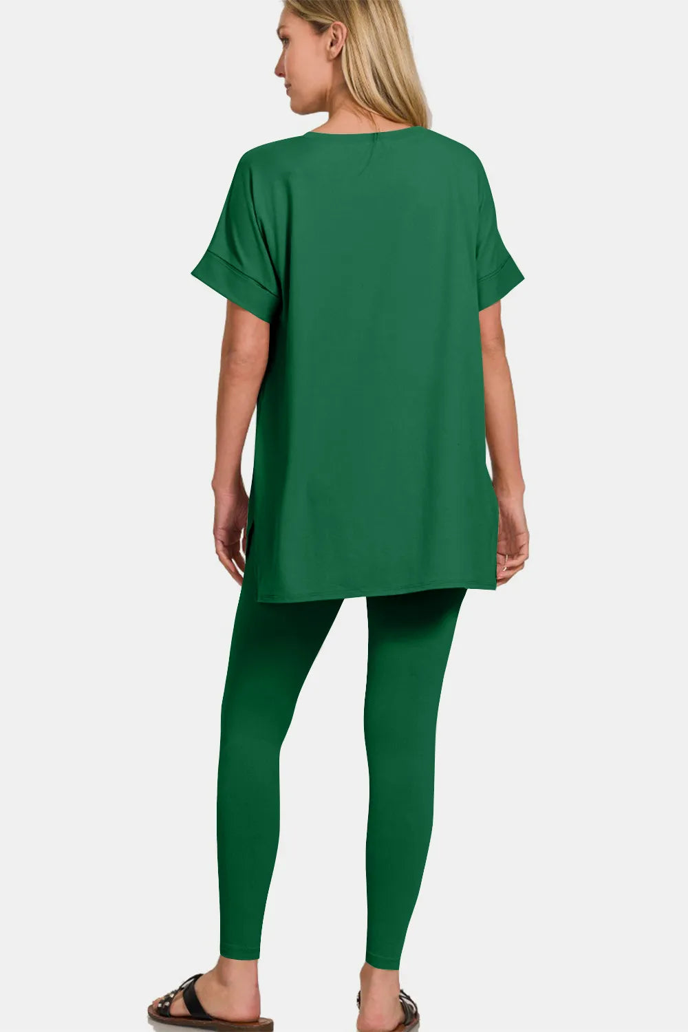 Zenana V-Neck Rolled Short Sleeve T-Shirt and Leggings Lounge Set