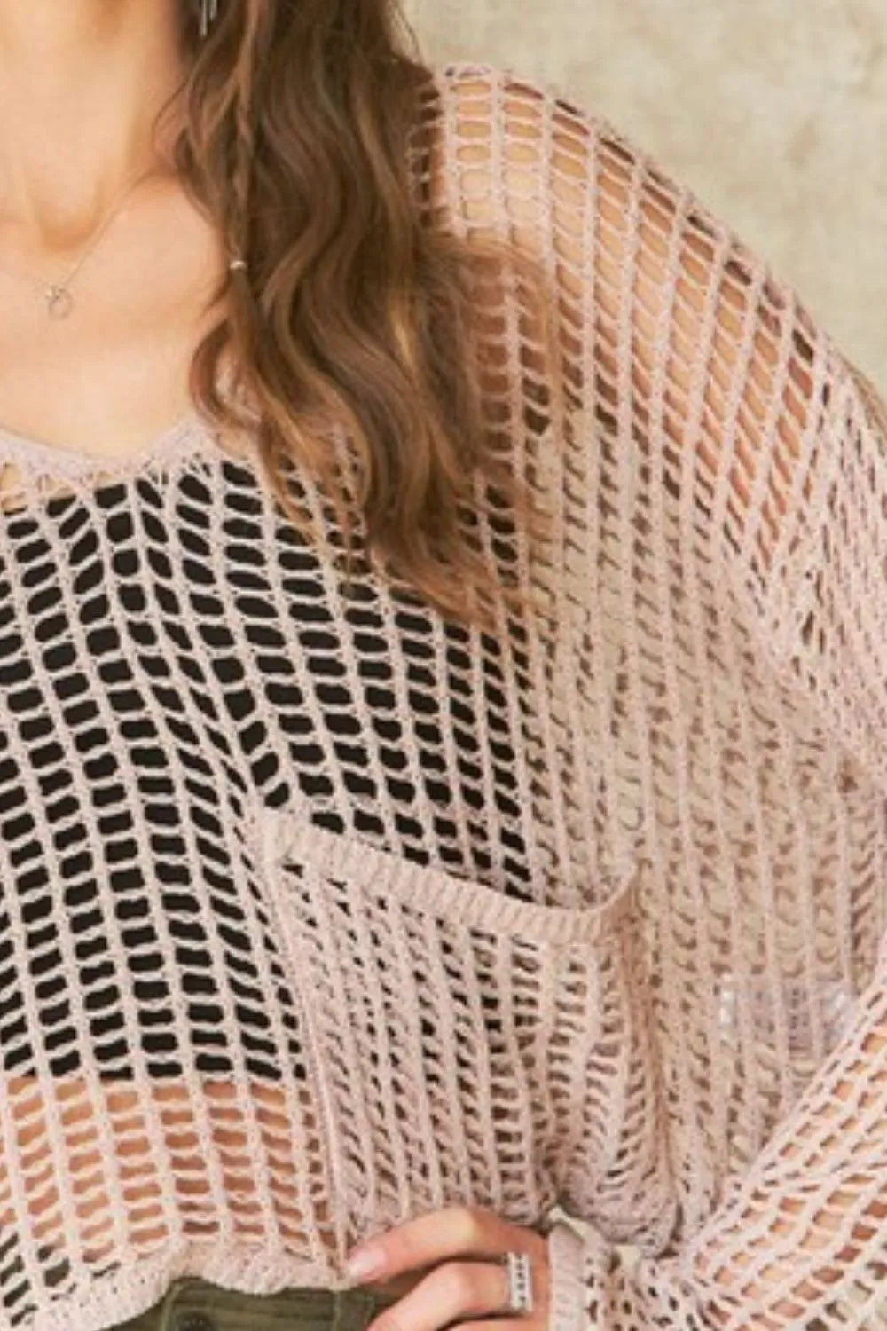 ADORA Crochet Long Sleeve Knit Cover Up with Big Pocket