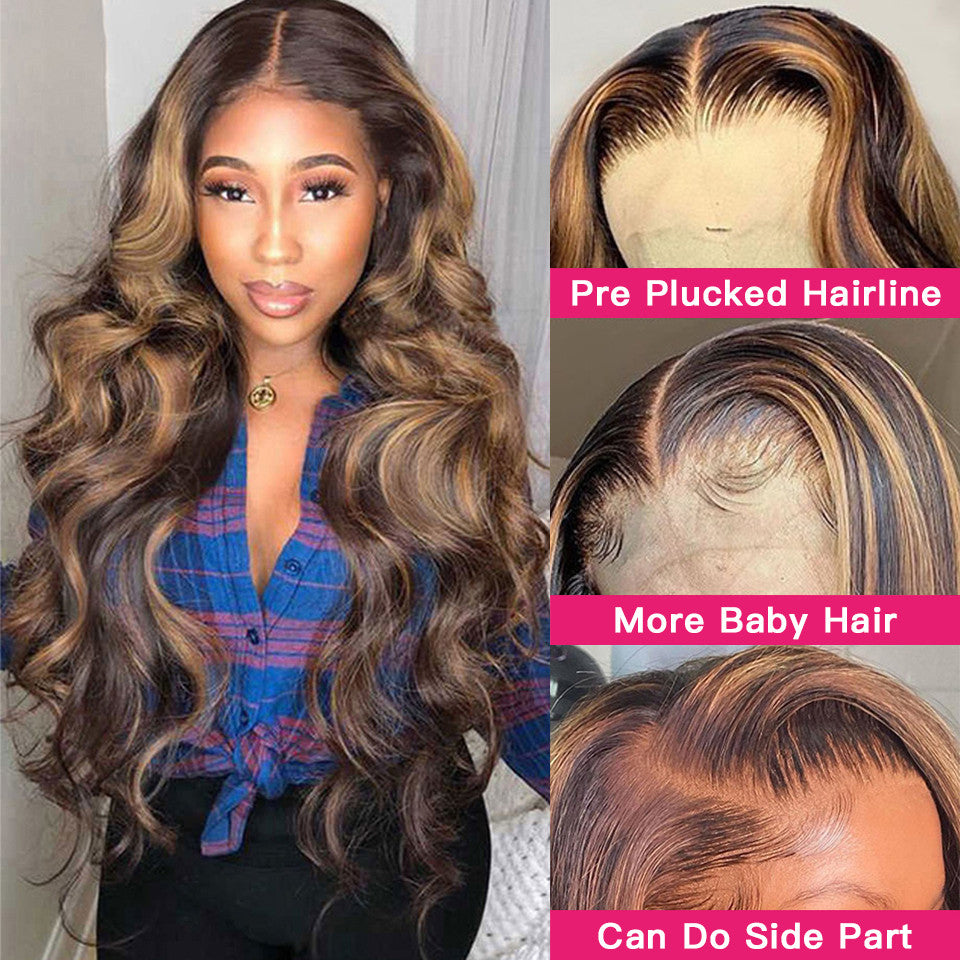 Glamorous 360 HD Lace Frontal Wig: 4/27 Highlights, Body Wave