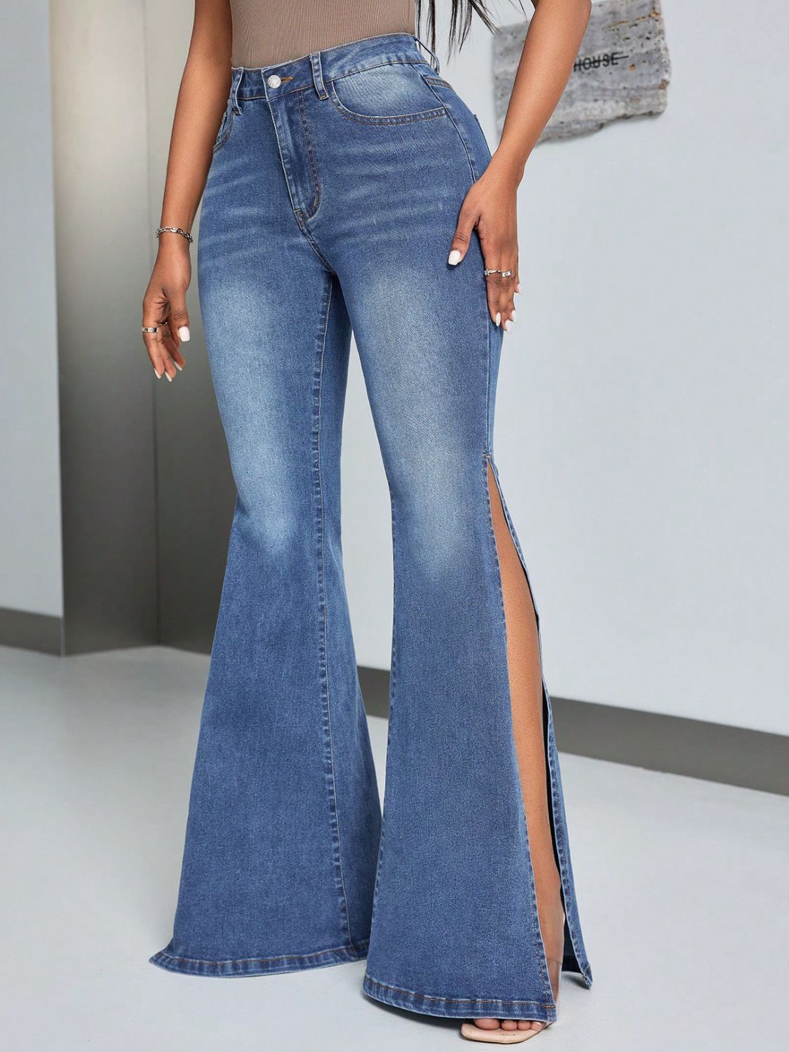 Slit Flare Jeans with Pockets
