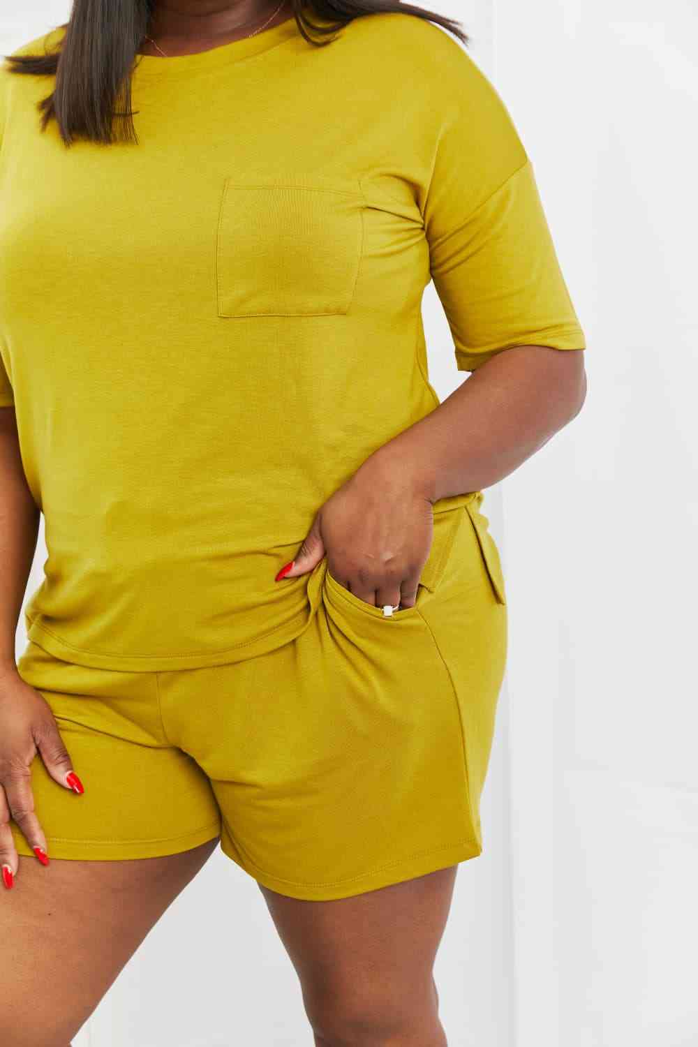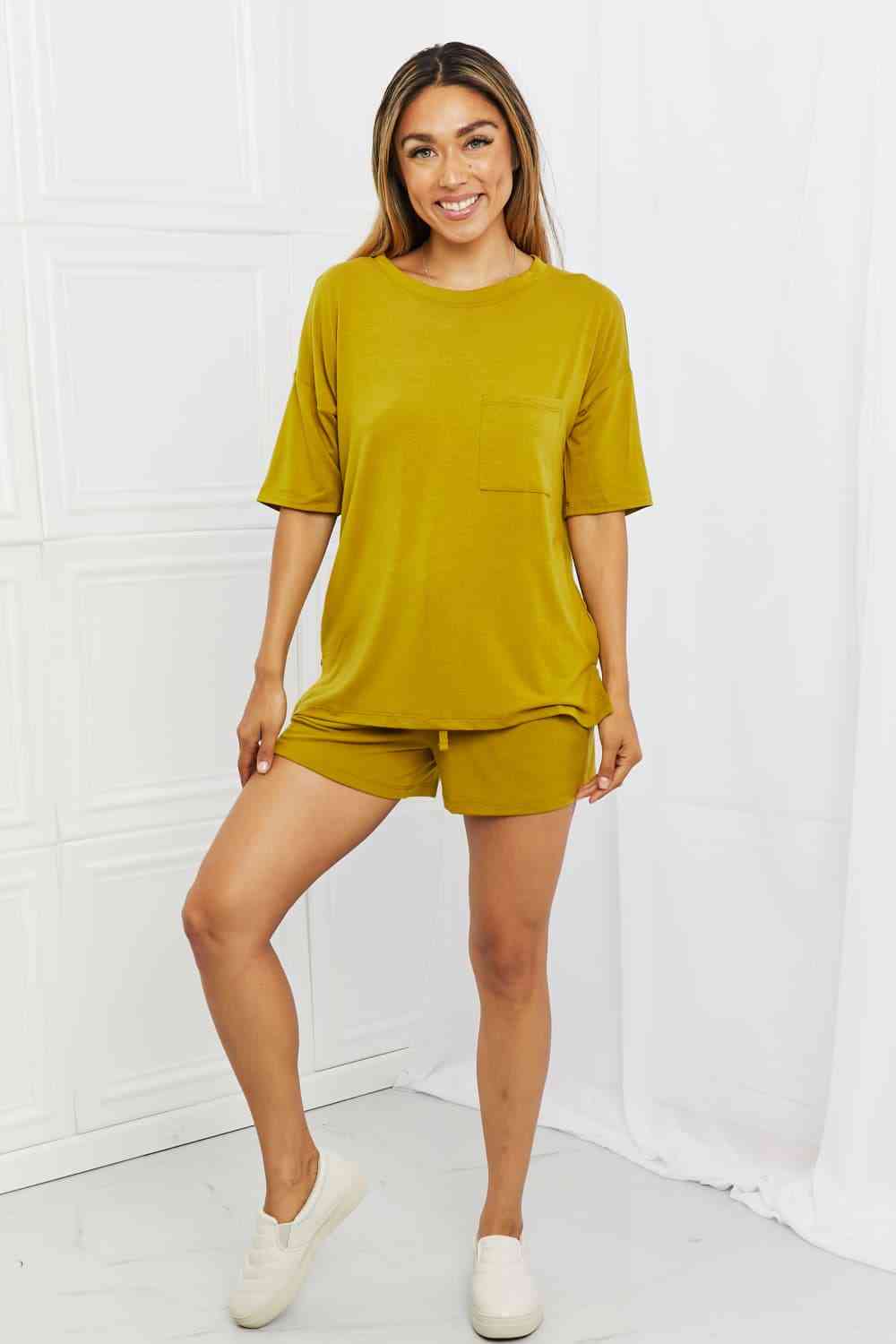 The perfect comfy set to lounge or run errands in. This set features a loose fit, drop shoulder top with a front pocket, and high waisted shorts with a functional drawstring and pockets. Pair with sneakers to stay comfortable all day!