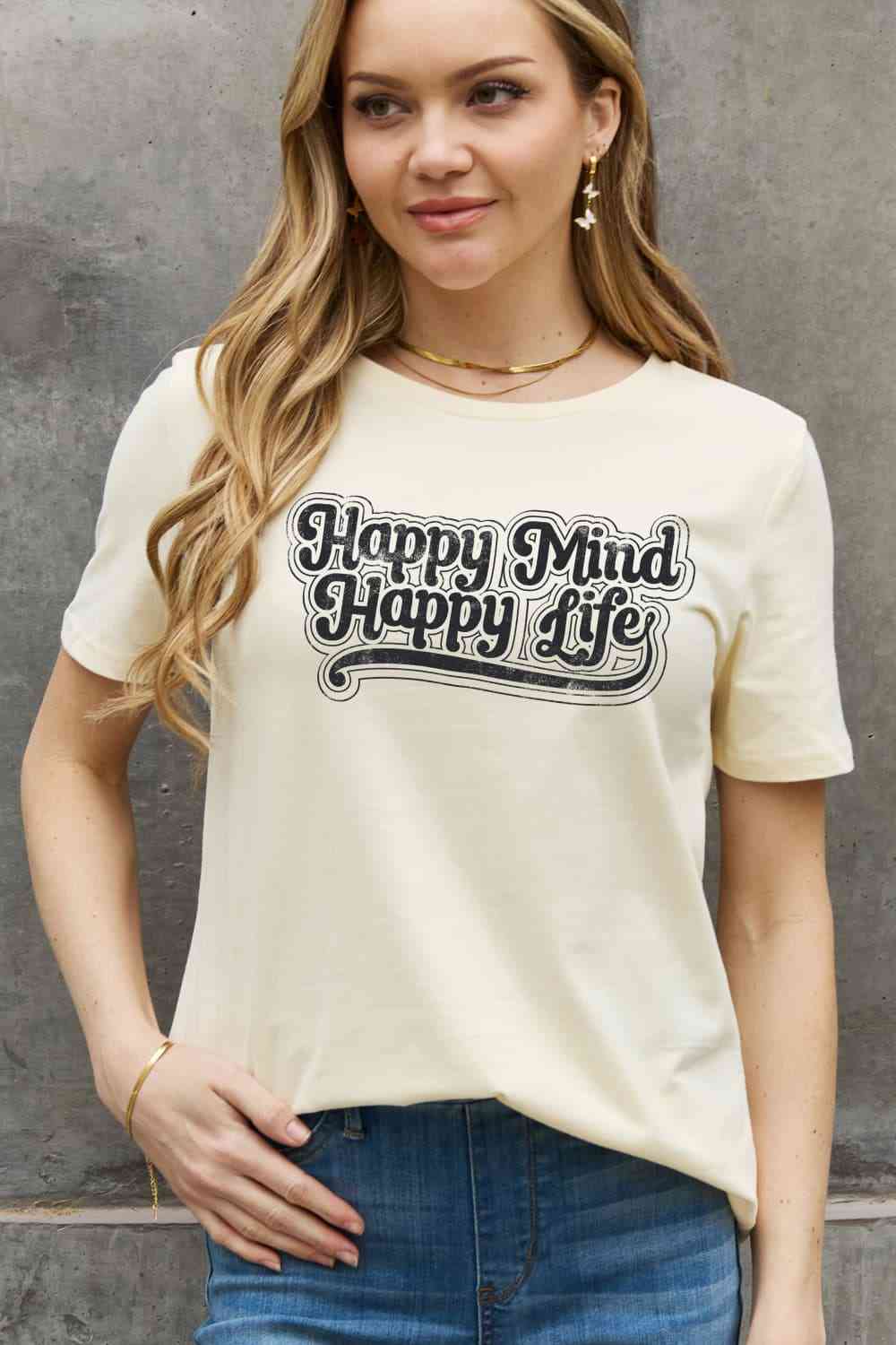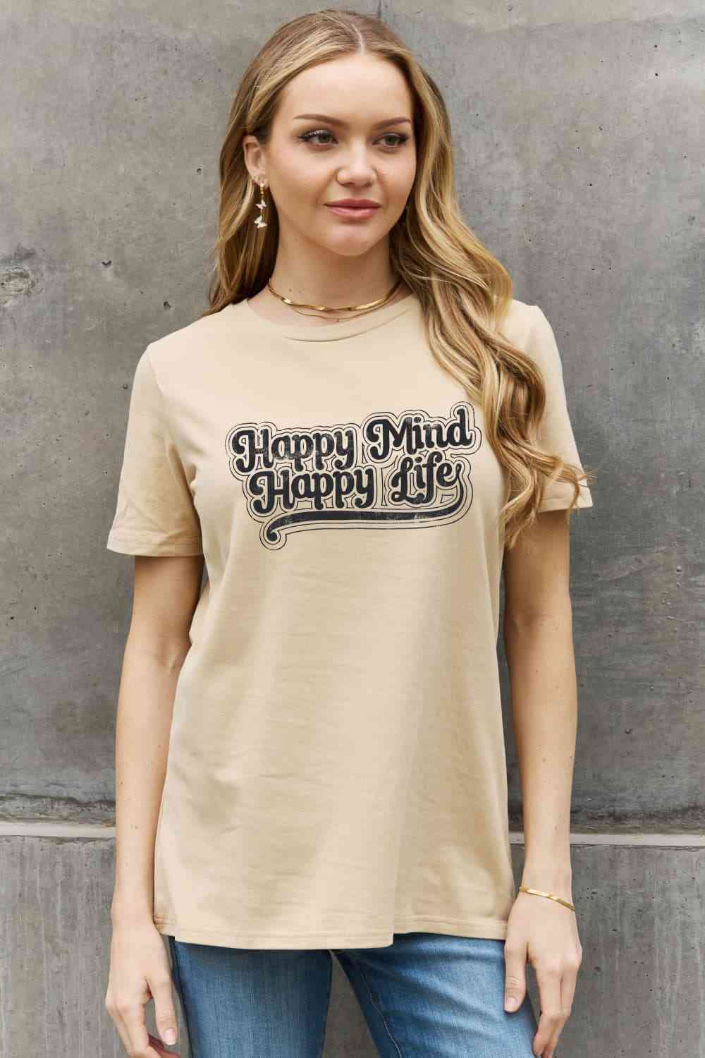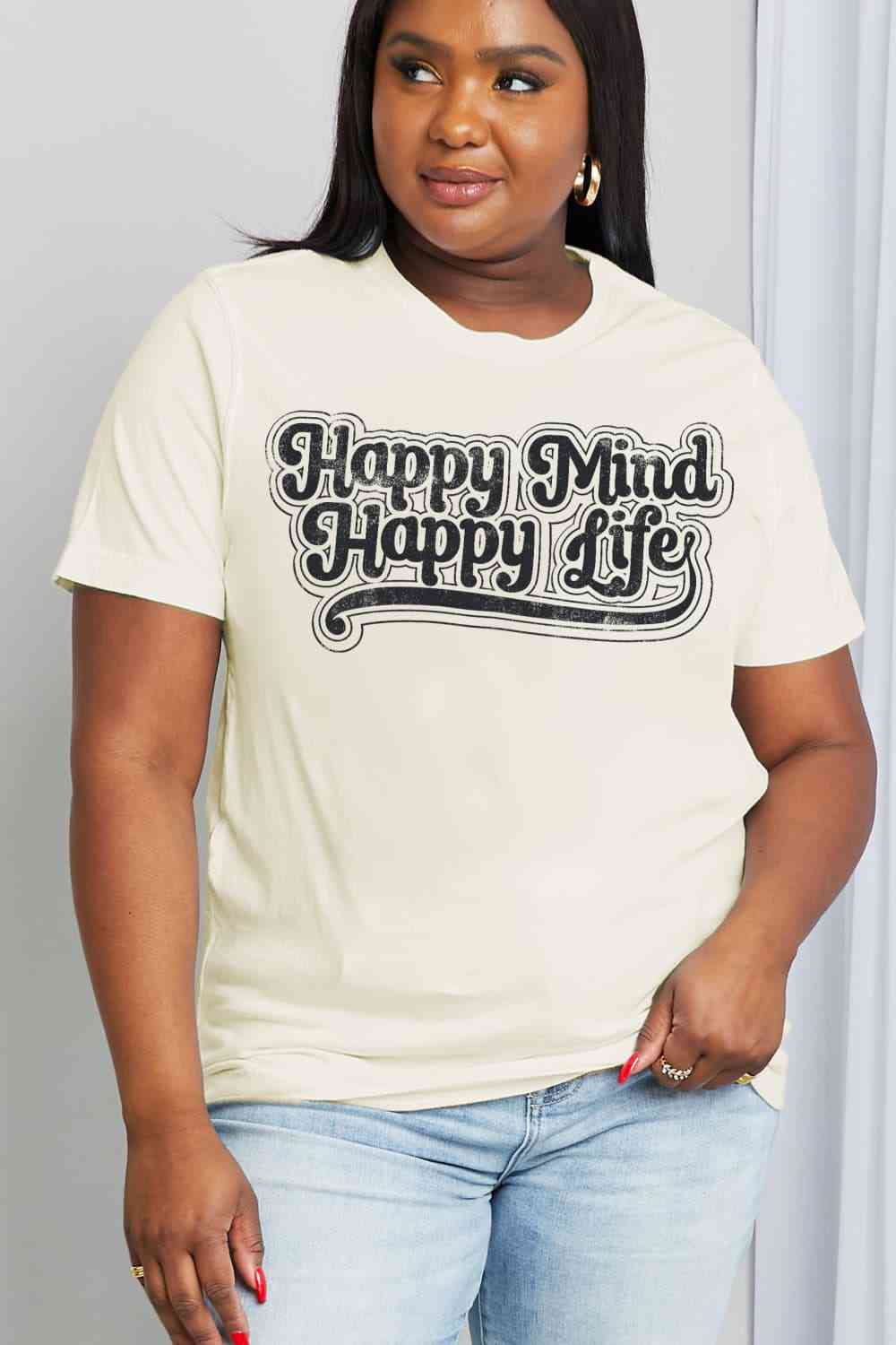 Simply Love Full Size HAPPY MIND HAPPY LIFE Graphic Cotton Tee
