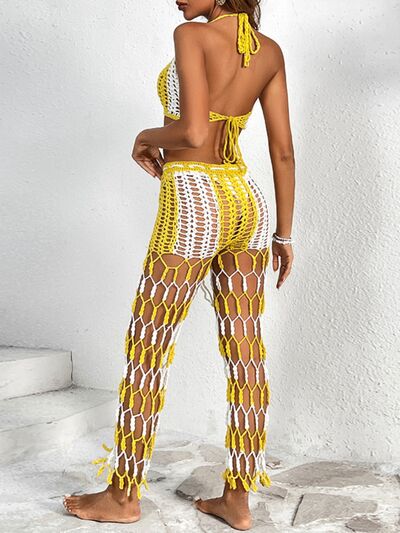 Cutout Halter Neck Top and Pants Two-Piece Swim Set